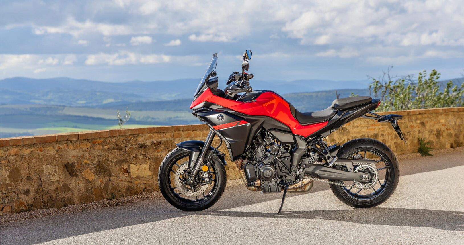 El motor CP2 EU5+ de 690 cc de la TRACER 7 ofrece un par lineal aprovechable en toda la gama de revoluciones para conseguir una aceleración impresionante, mientras que su chasis rediseñado dotado de mayor rigidez y la horquilla delantera invertida ajustable proporcionan un mejor agarre en cada curva de la carretera.