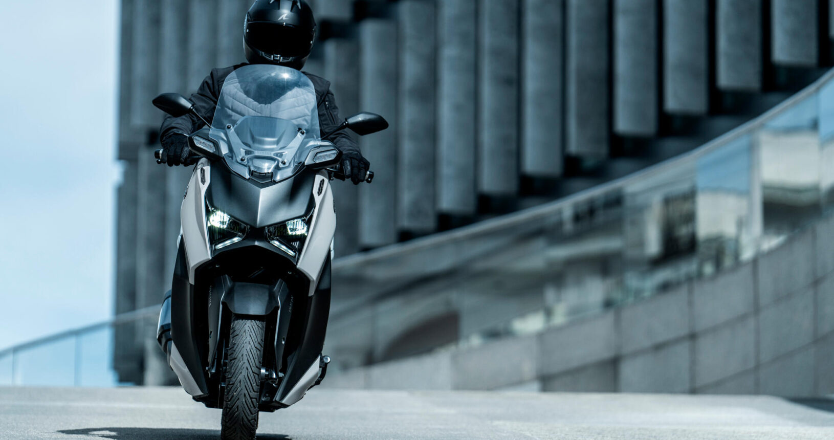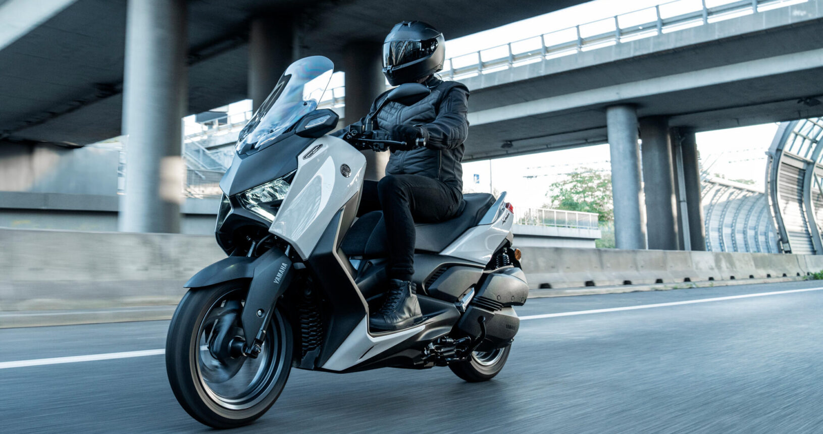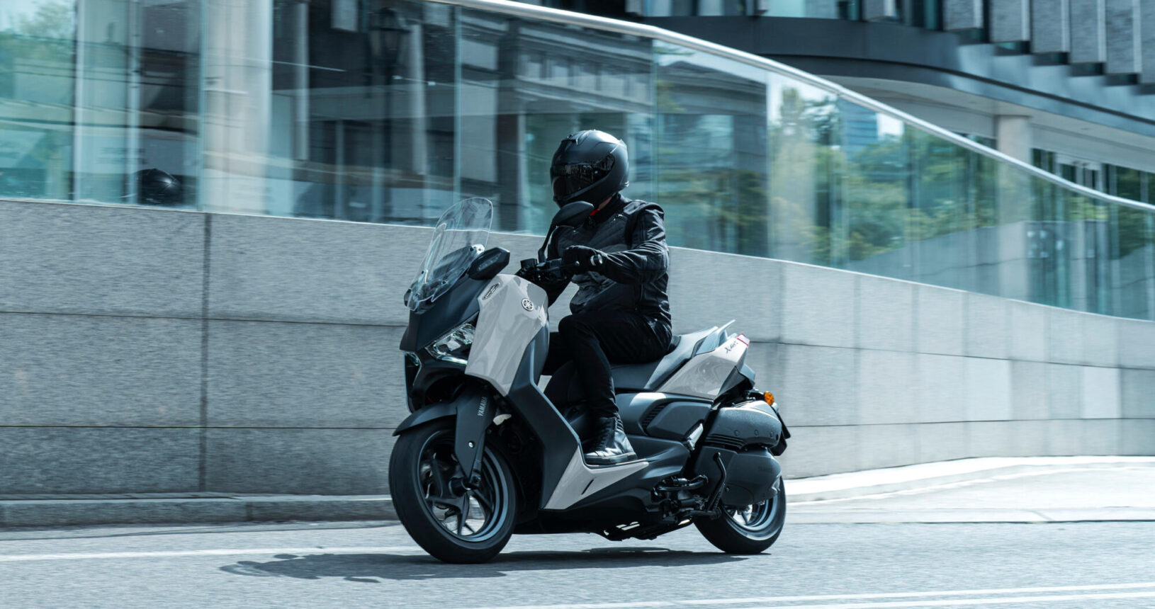 Para una protección contra el viento aún mayor, la XMAX 300 Tech MAX+ está equipada con una cúpula ajustable electrónicamente que proporciona 95 mm de ajuste continuo, mientras que la carcasa rediseñada de los intermitentes y el spoiler delantero también reducen las sacudidas del viento. La combinación de manillar ajustable y reposapiés espaciosos permite a los usuarios de la XMAX 300 Tech MAX+ conseguir la configuración ideal fácilmente.