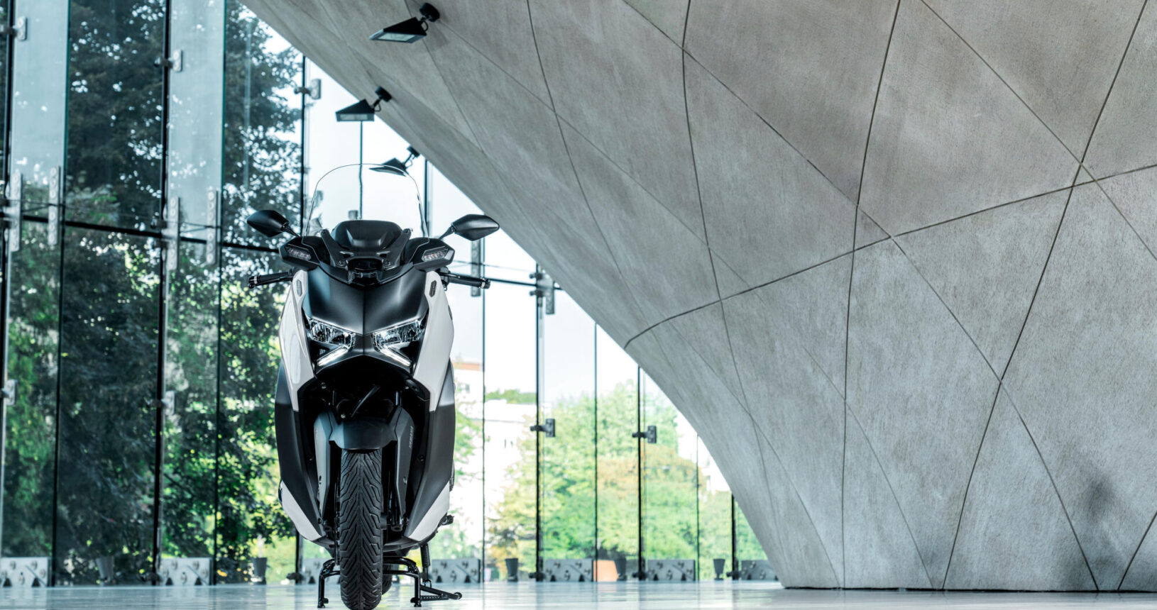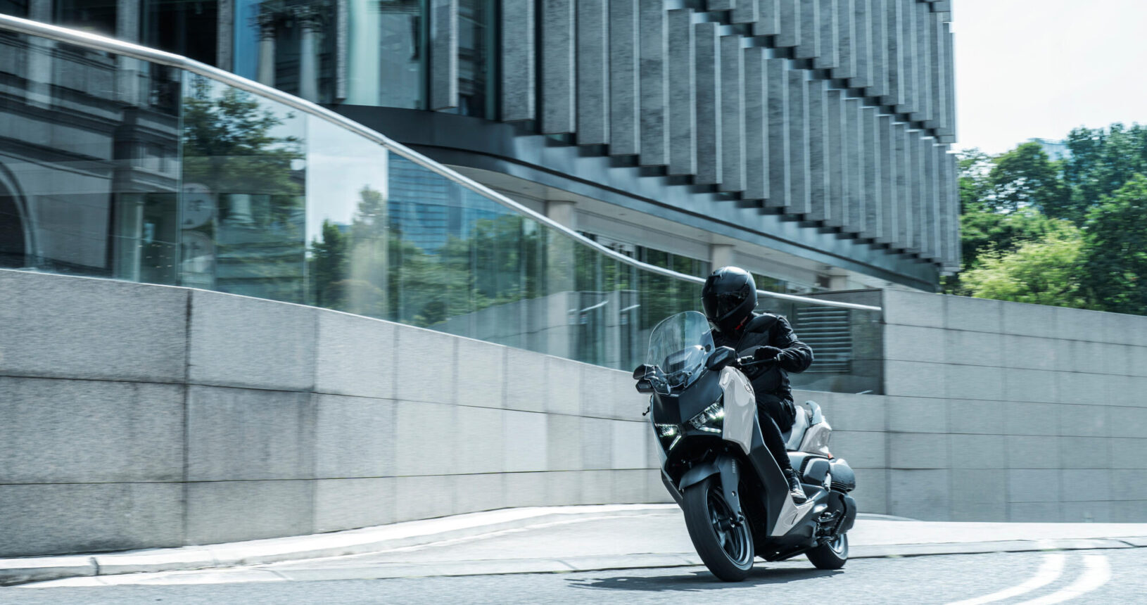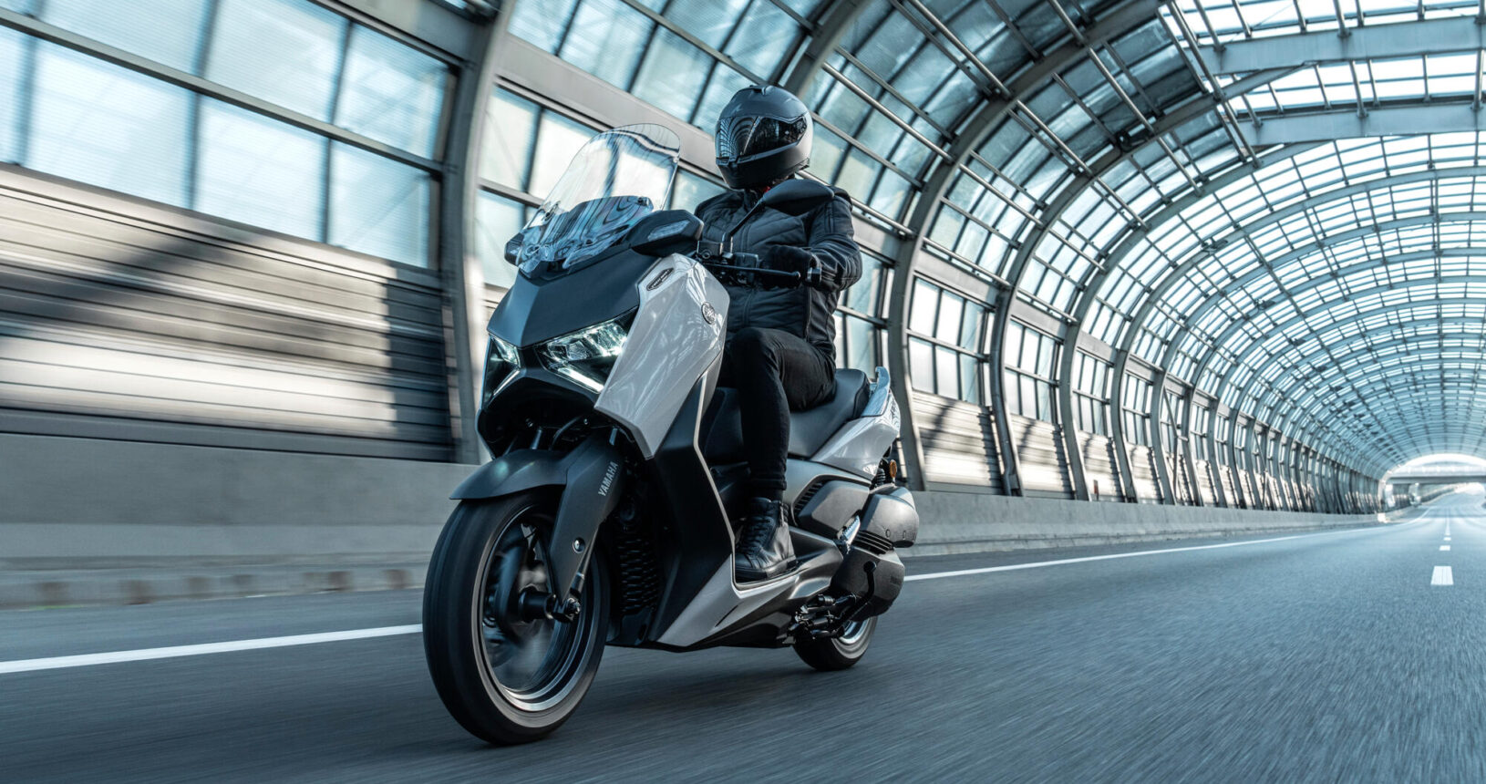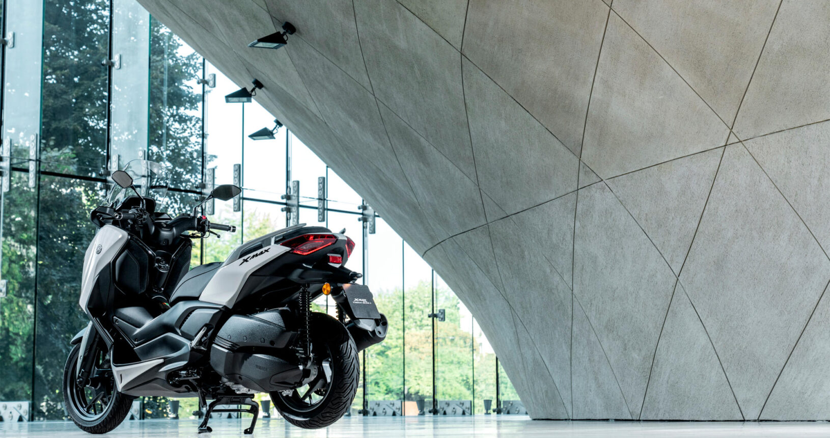 Para una protección contra el viento aún mayor, la XMAX 300 Tech MAX+ está equipada con una cúpula ajustable electrónicamente que proporciona 95 mm de ajuste continuo, mientras que la carcasa rediseñada de los intermitentes y el spoiler delantero también reducen las sacudidas del viento. La combinación de manillar ajustable y reposapiés espaciosos permite a los usuarios de la XMAX 300 Tech MAX+ conseguir la configuración ideal fácilmente.